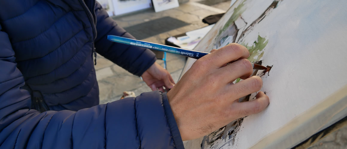 L’en plein air è cosa meravigliosa ma porta al limite la vostra pazienza. Il dover continuamente spostarsi per rimanere all’ombra anche se cambierete la prospettiva, l’inutile riparo dal sole che si sposta continuamente e che ti carbonizza come con i vampiri, le nubi che si piazzano davanti al sole nel momento esatto in cui stai per dipingere le ombre appiattendo tutto. Insetti che ti mordono i calcagni, il vento che ti asciuga troppo rapidamente la carta o che ti porta via direttamente il cavalletto. Passanti molesti che ti rivelano che anche la loro cugina dipinge e ti chiedono se la conosci, ovviamente, come puoi non conoscerla. Simpatici vecchietti che oltre ad essere completamente disinteressati a quello che stai dipingendo, ti raccontano le morti atroci di tutti gli artisti del paese. Tu ascolti annuendo mentre con una mano in tasca ti tocchi i gioielli per scaramanzia. Ecco, questa è solo la punta dell’iceberg delle situazioni che dovrai affrontare quando dipingi dal vero. Ricordatelo.